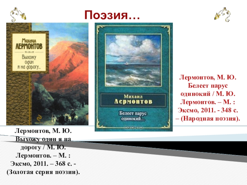 Лермонтов, М. Ю. Белеет парус одинокий / М. Ю. Лермонтов. – М. : Эксмо, 2011. - 348 с. – (Народная поэзия).