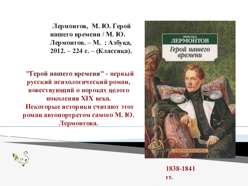 Лермонтов, М. Ю. Герой нашего времени / М. Ю. Лермонтов. – М. : Азбука, 2012. – 224 с. – (Классика).