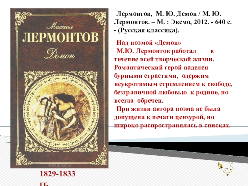 Лермонтов, М. Ю. Демон / М. Ю. Лермонтов. – М. : Эксмо, 2012. - 640 с. - (Русская классика).