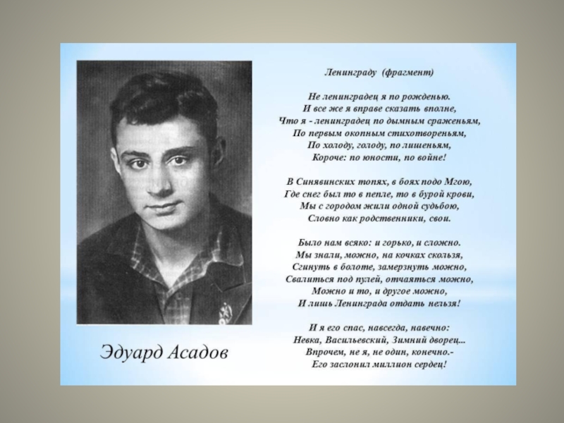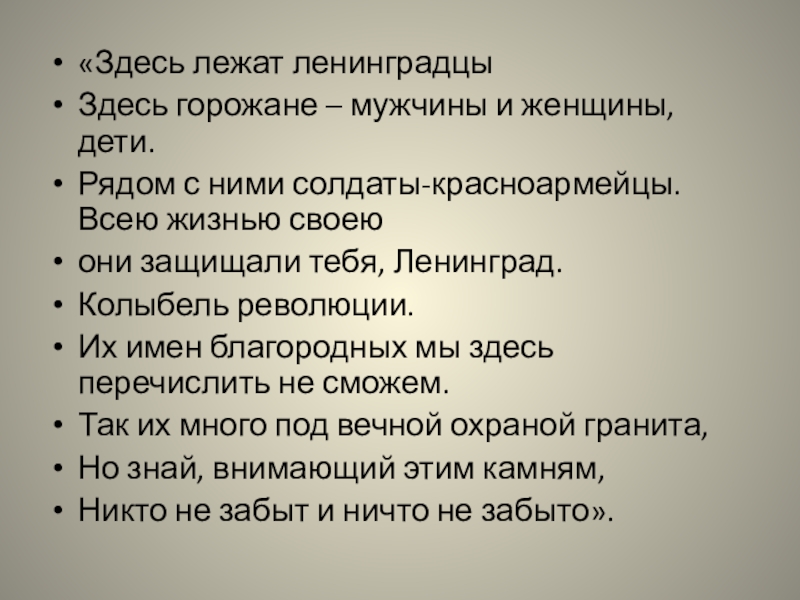Ее слова входили в обледенелые мертвые дома, вселяли надежду в голодных, ослабевших людей, им верили. Это она сказала: «Сто двадцать пять блокадных грамм, с огнем и кровью пополам».