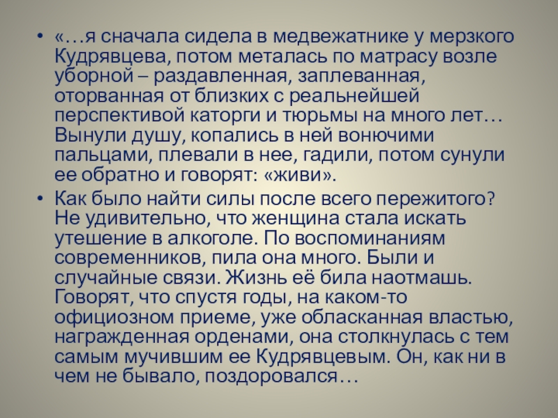 Слайд 16«…я сначала сидела в медвежатнике у мерзкого Кудрявцева, потом металась по