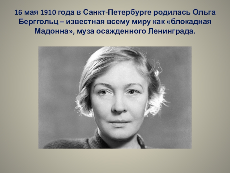 Слайд 616 мая 1910 года в Санкт-Петербурге родилась Ольга Берггольц – известная