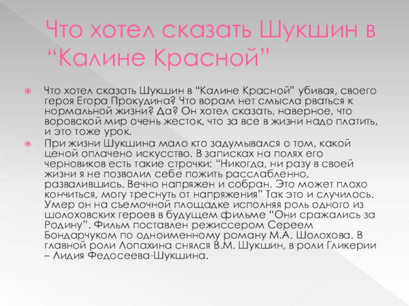 Слайд 30Что хотел сказать Шукшин в “Калине Красной”