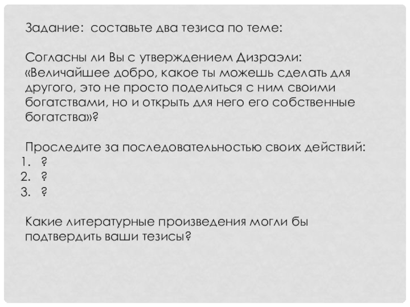 Слайд 20Формулируя свои ответы на проблемный вопрос, всегда надо помнить, что тезисы
