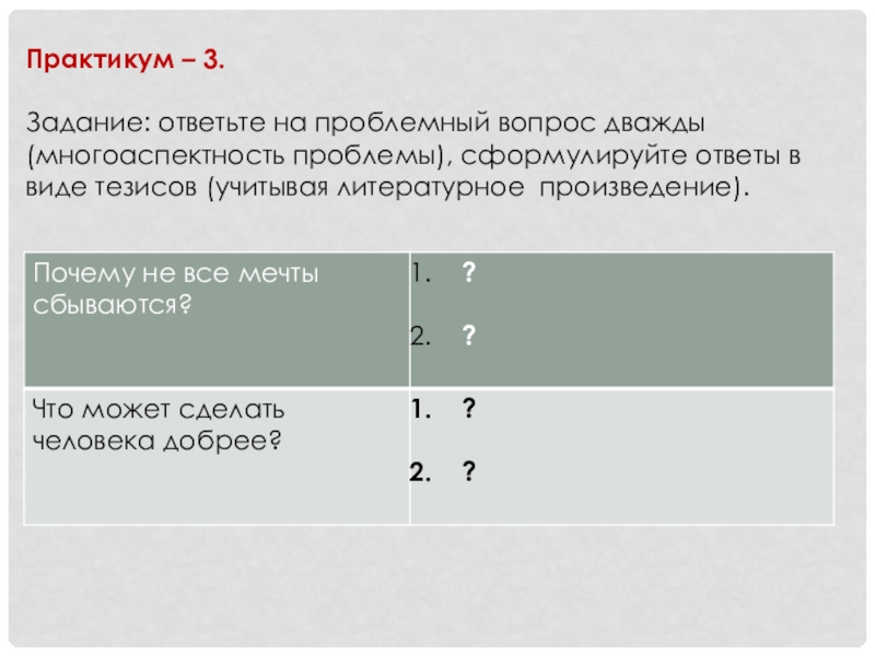 Задание: ответьте на проблемный вопрос дважды (многоаспектность проблемы), сформулируйте