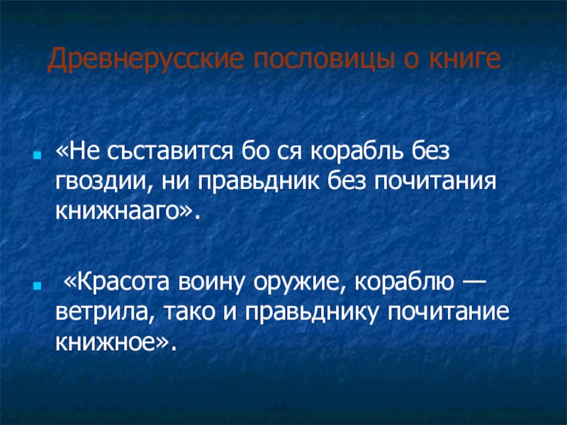 Слайд 4«Не съставится бо ся корабль без гвоздии, ни правьдник без почитания