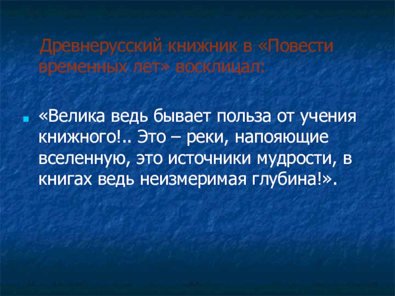 Слайд 2 Древнерусский книжник в «Повести временных лет» восклицал: