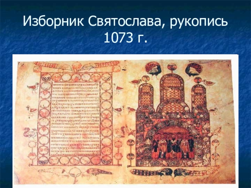 Слайд 21Изборник Святослава, рукопись 1073 г.