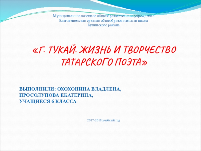 ЖИЗНЬ И ТВОРЧЕСТВО ТАТАРСКОГО ПОЭТА»