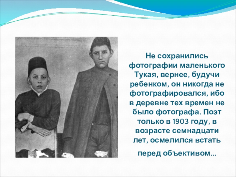 Слайд 12Не сохранились фотографии маленького Тукая, вернее, будучи ребенком, он никогда не