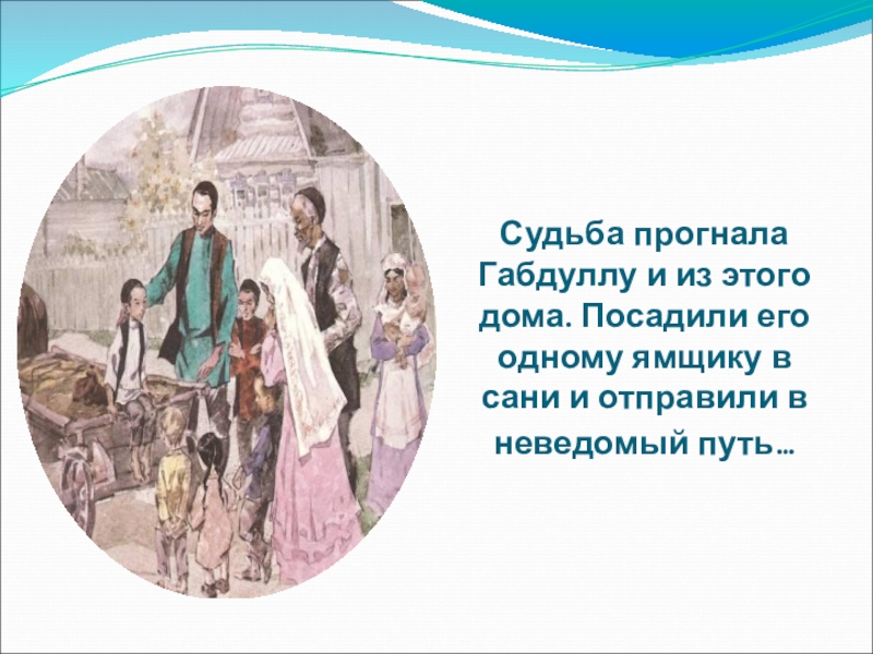 Слайд 6Судьба прогнала Габдуллу и из этого дома. Посадили его одному ямщику