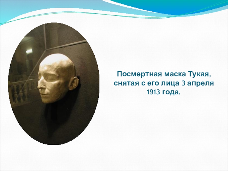 Слайд 19Посмертная маска Тукая, снятая с его лица 3 апреля 1913 года.