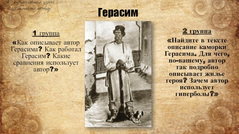 «Как описывает автор Герасима? Как работал Герасим? Какие сравнения использует