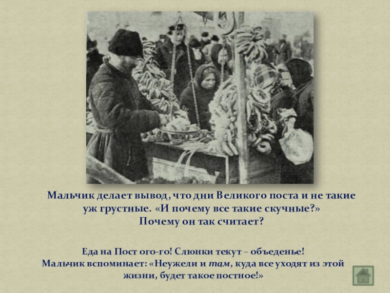 Мальчик вспоминает: «Неужели и там, куда все уходят из этой жизни, будет такое постное!»