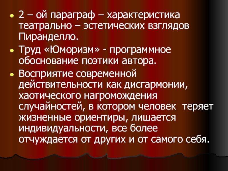Слайд 102 – ой параграф – характеристика театрально – эстетических взглядов Пиранделло.