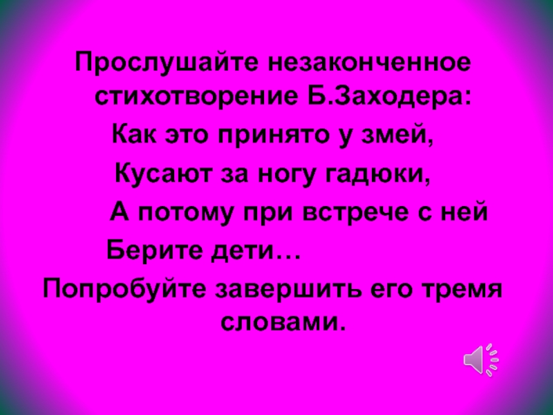 Слайд 70Прослушайте незаконченное стихотворение Б.Заходера: