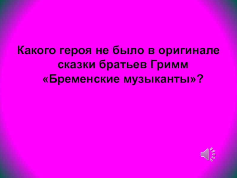 Слайд 33Какого героя не было в оригинале сказки братьев Гримм «Бременские музыканты»?