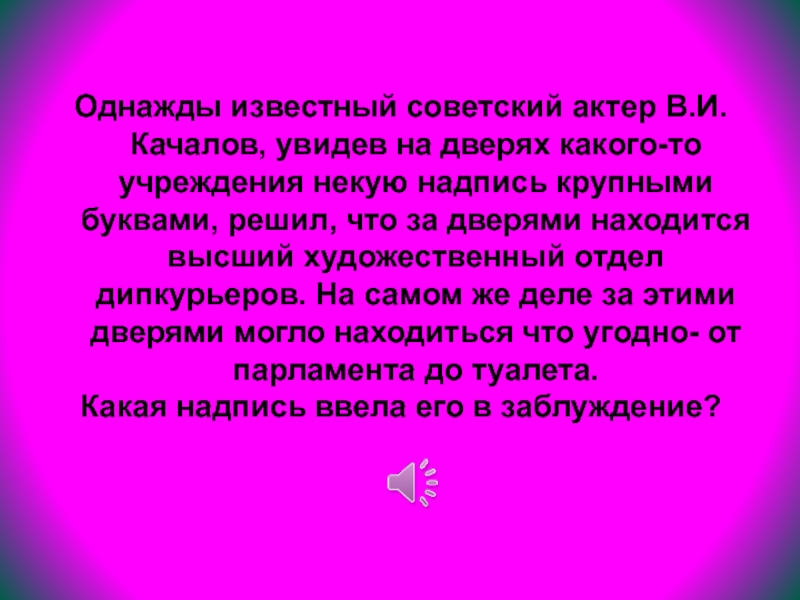 Однажды известный советский актер В.И.Качалов, увидев на дверях какого-то учреждения некую