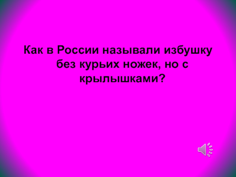 Слайд 76Как в России называли избушку без курьих ножек, но с крылышками?