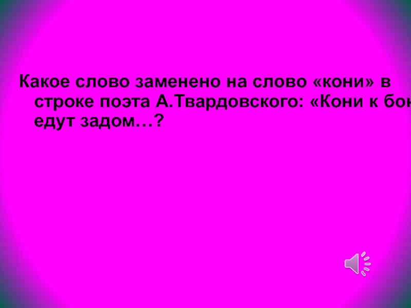 Слайд 17Какое слово заменено на слово «кони» в строке поэта А.Твардовского: «Кони