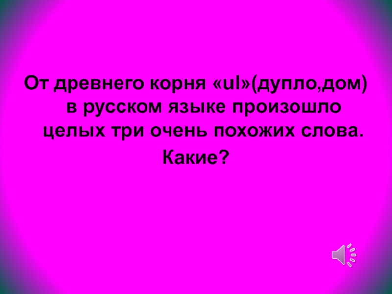 Слайд 58От древнего корня «ul»(дупло,дом) в русском языке произошло целых три очень