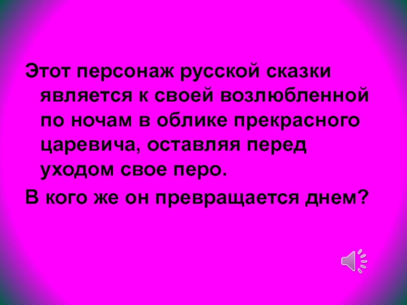облике прекрасного царевича, оставляя перед уходом свое перо.