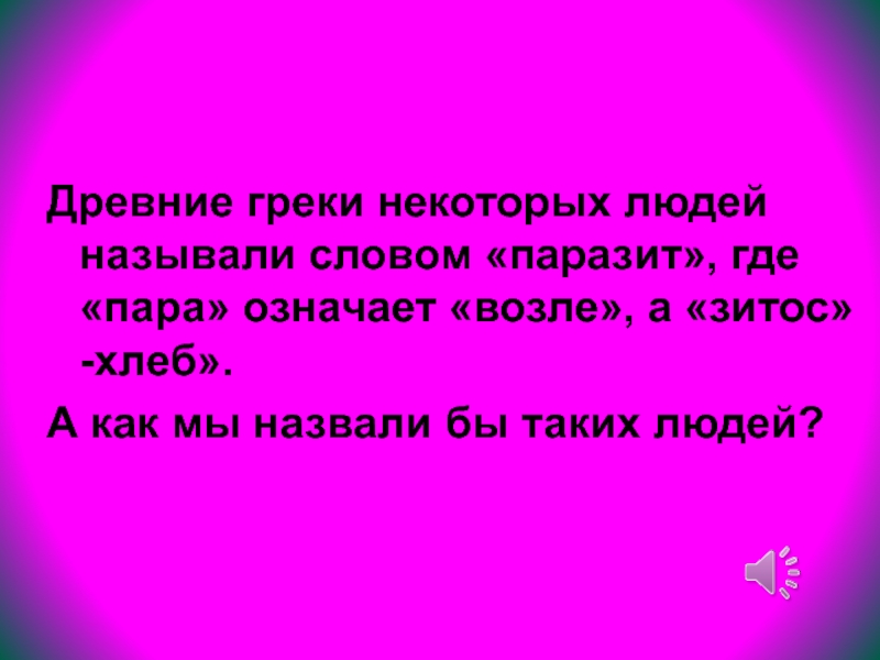 Древние греки некоторых людей называли словом «паразит», где «пара» означает «возле»,