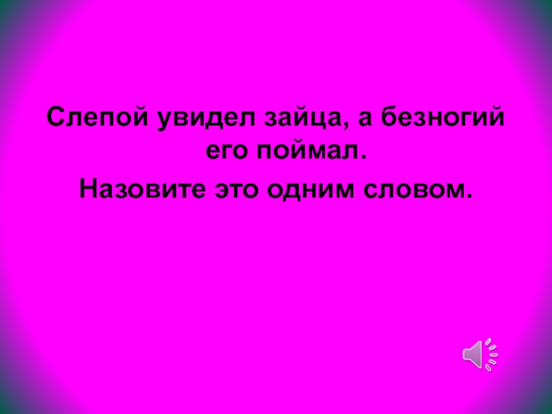 Слайд 46Слепой увидел зайца, а безногий его поймал.