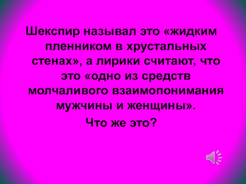 Слайд 68Шекспир называл это «жидким пленником в хрустальных стенах», а лирики считают,