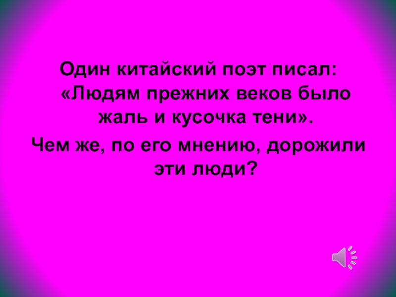 Слайд 15Один китайский поэт писал: «Людям прежних веков было жаль и кусочка