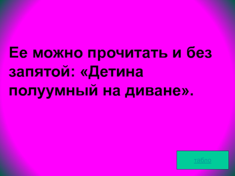 Ее можно прочитать и без запятой: «Детина полуумный на диване».