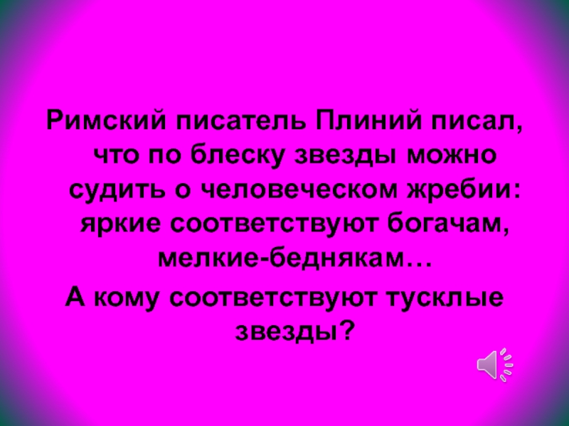 Слайд 54Римский писатель Плиний писал, что по блеску звезды можно судить о