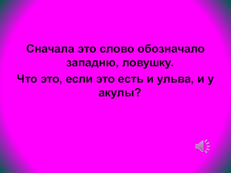 Слайд 66Сначала это слово обозначало западню, ловушку.