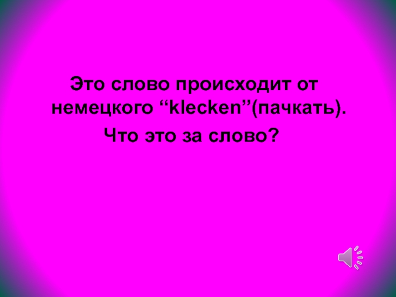 Слайд 5 Это слово происходит от немецкого “klecken”(пачкать).