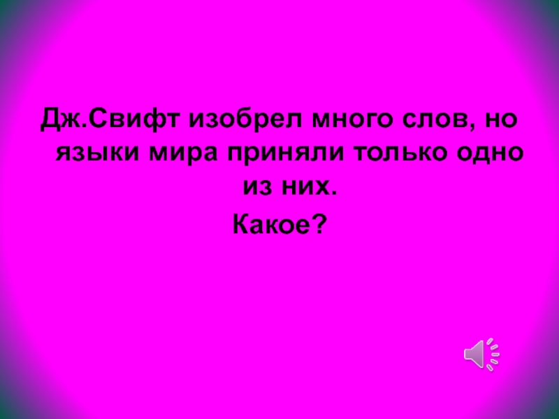 Слайд 78Дж.Свифт изобрел много слов, но языки мира приняли только одно из