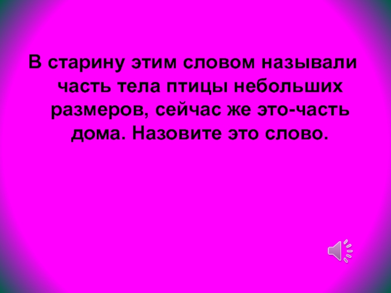 Слайд 31В старину этим словом называли часть тела птицы небольших размеров, сейчас