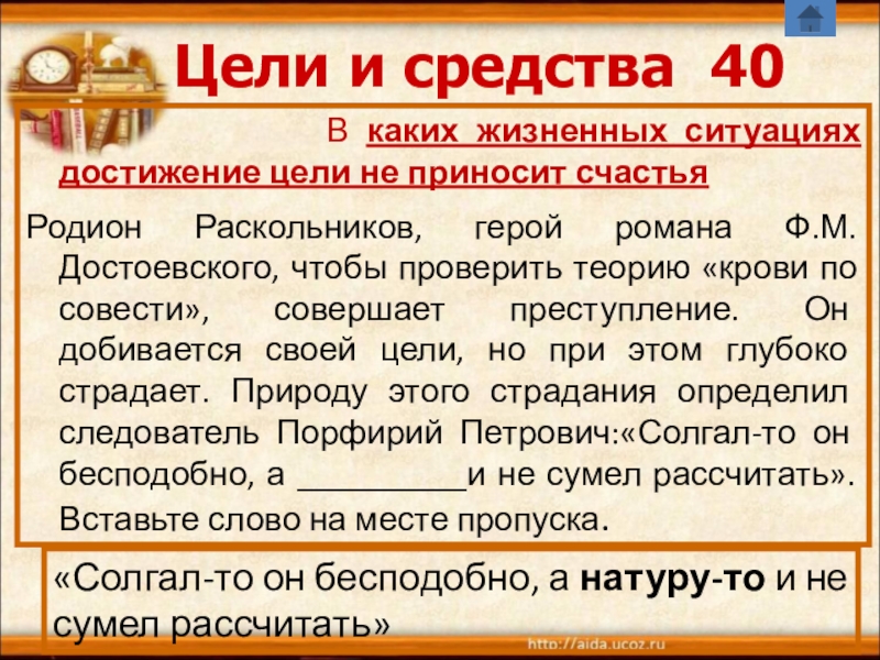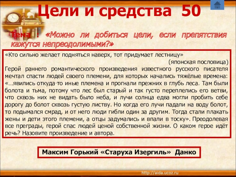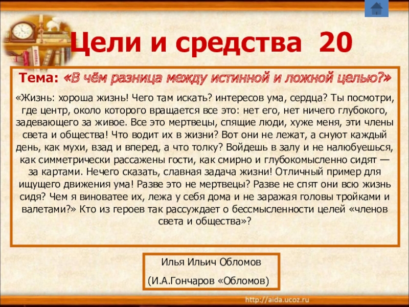 А.П. Чехов «Крыжовник» (Чимша-Гималайский, мечтая об усадьбе с крыжовником, недоедает, отказывает себе во всем, женится по расчету, одевается словно нищий и копит деньги. Он практически уморил голодом свою жену, но мечту осуществил. Таким образом, всю свою жизнь он потратил на то, чтобы в конце иметь возможность есть кислый крыжовник из своего сада)