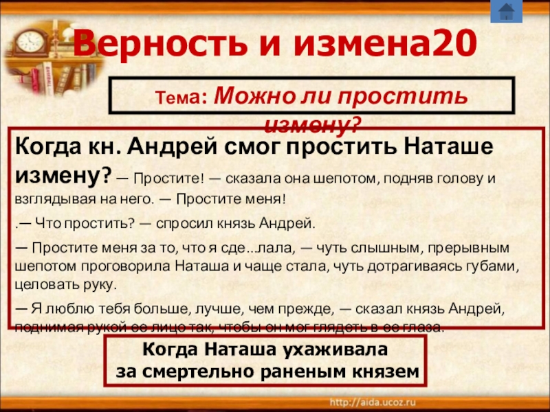 Писатели часто проводят героев своих произведений через испытание любовью, в котором требуется проявить решительность и смелость, в том числе и в признании собственной слабости. Каждый герой, в силу обстоятельств и душевного склада, по-своему преодолевает это испытание. Определите, о каких героях идёт речь в приведённых ниже отрывках, к кому они обращаются. Назовите произведения и авторов.