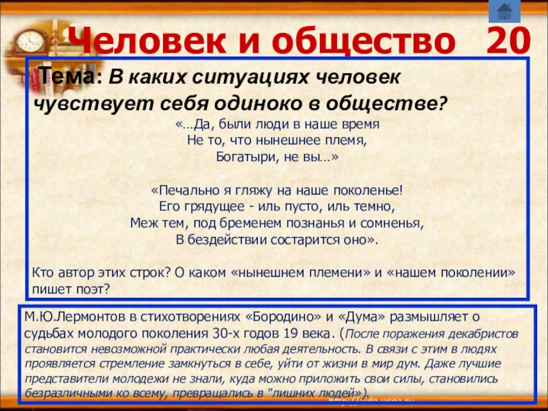 Тема: В каких ситуациях человек чувствует себя одиноко в обществе?