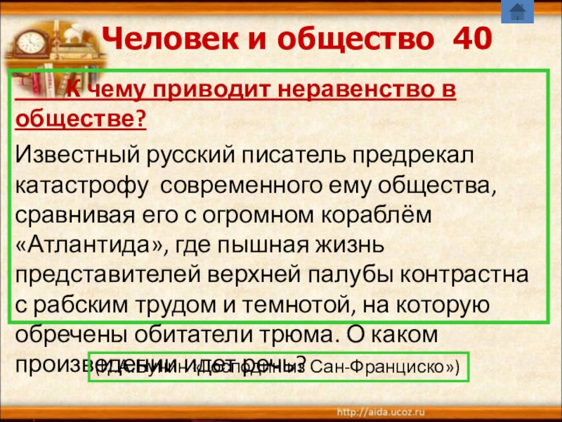 (И.А.Бунин «Господин из Сан-Франциско»)