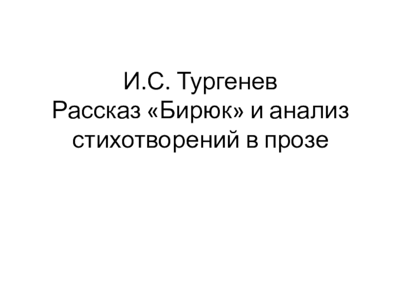 Слайд 1И.С. Тургенев Рассказ «Бирюк» и анализ стихотворений в прозе