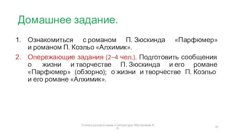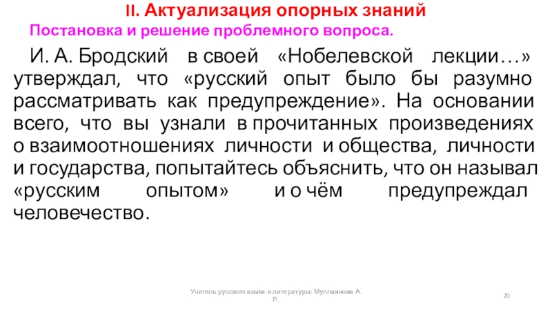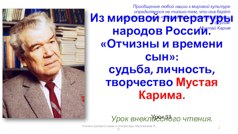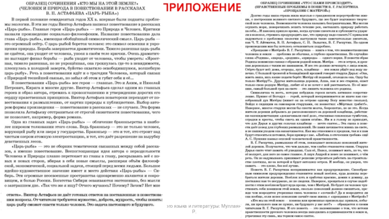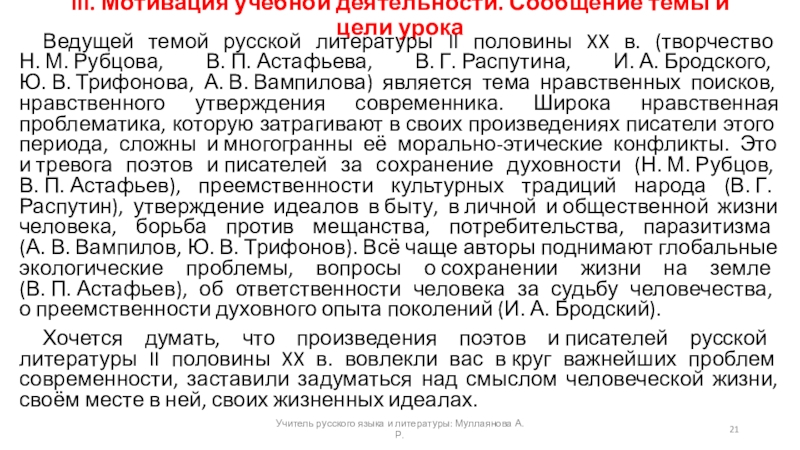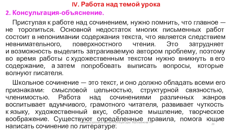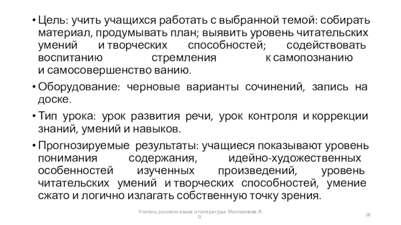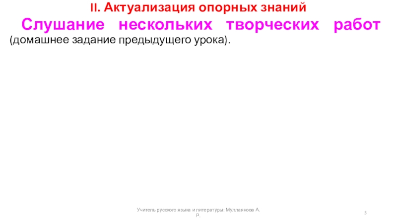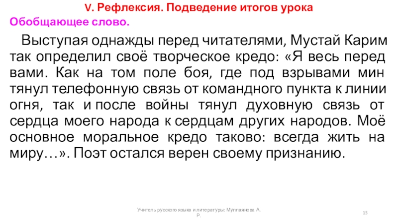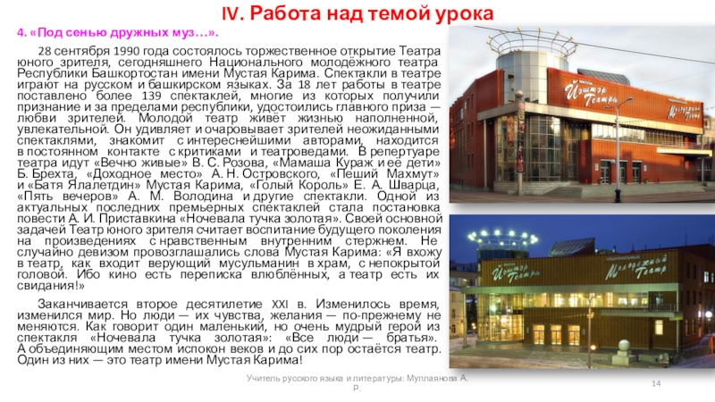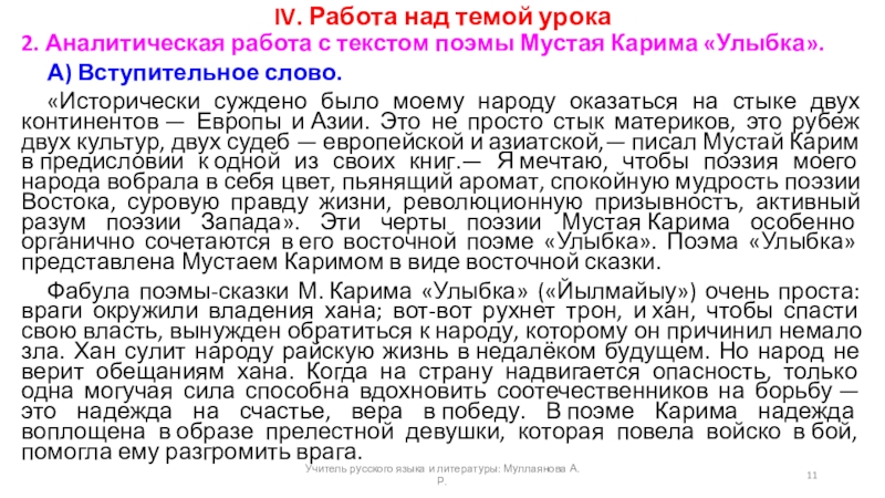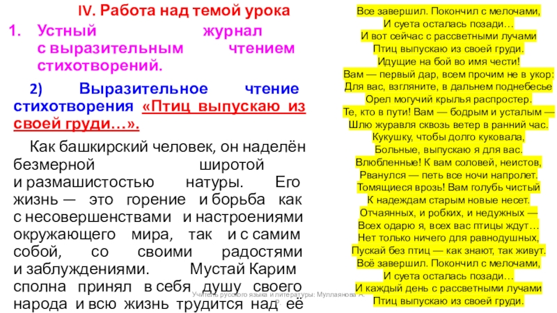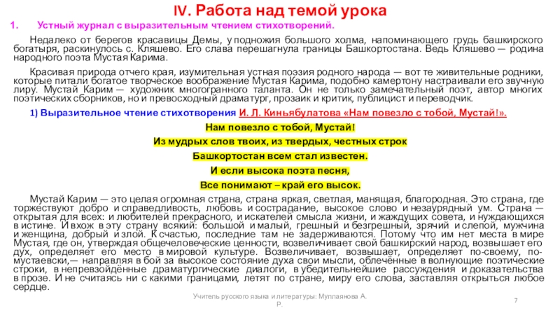 Учитель русского языка и литературы: Муллаянова А. Р.