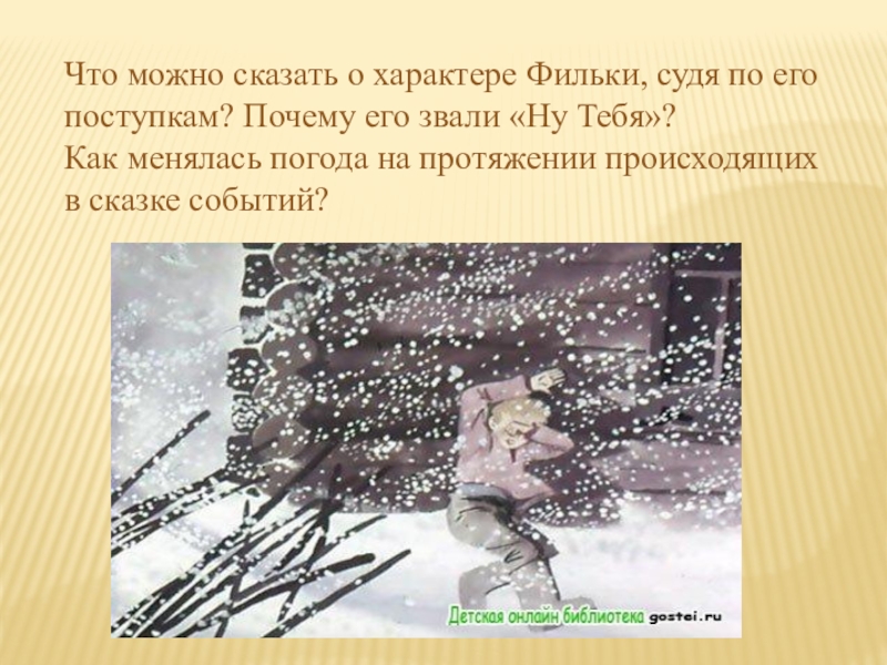 Слайд 10Что можно сказать о характере Фильки, судя по его поступкам? Почему