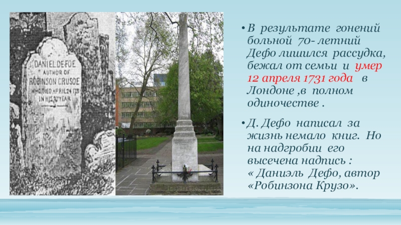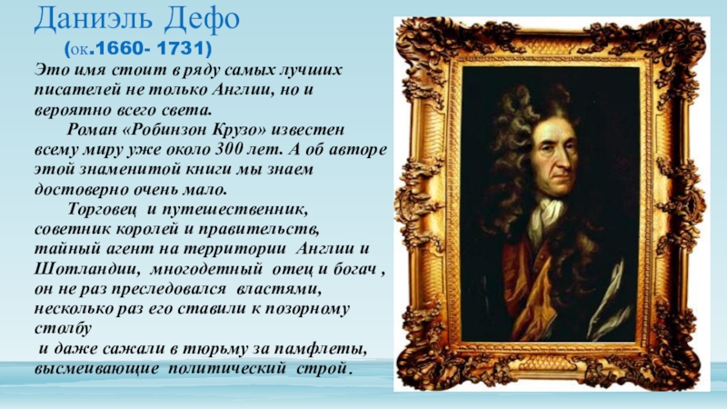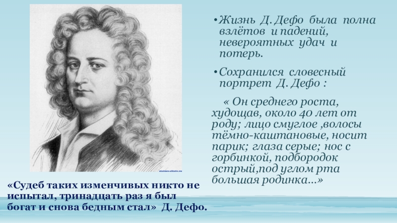 Жизнь Д. Дефо была полна взлётов и падений, невероятных удач и потерь.