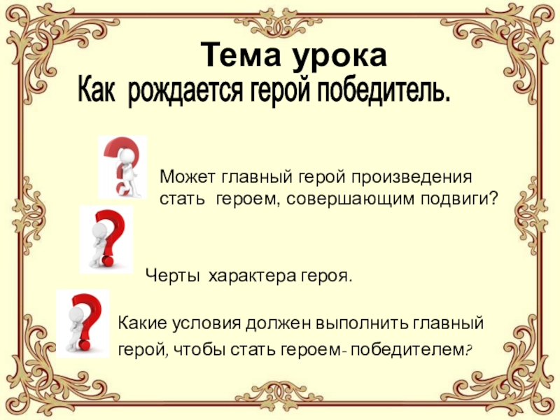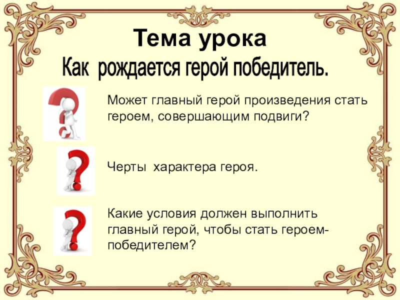 Какие условия должен выполнить главный герой, чтобы стать героем- победителем?