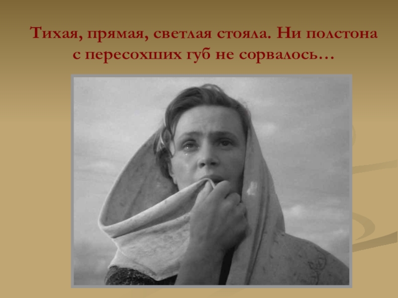 Слайд 3Тихая, прямая, светлая стояла. Ни полстона с пересохших губ не сорвалось…