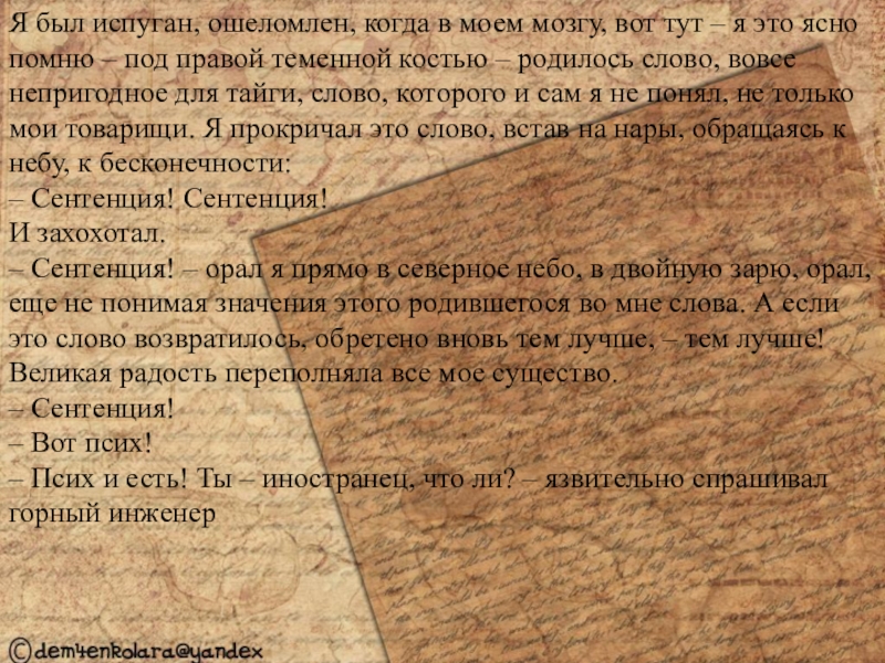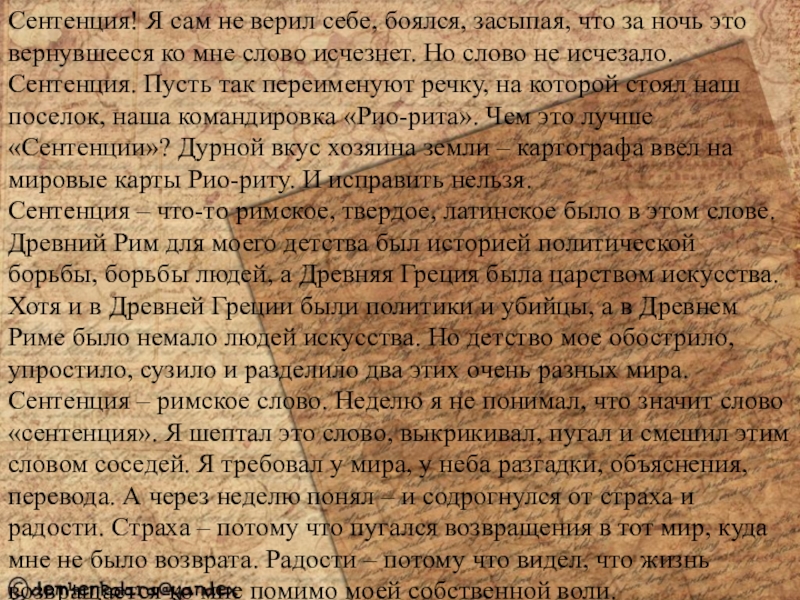 Слайд 29Сентенция! Я сам не верил себе, боялся, засыпая, что за ночь