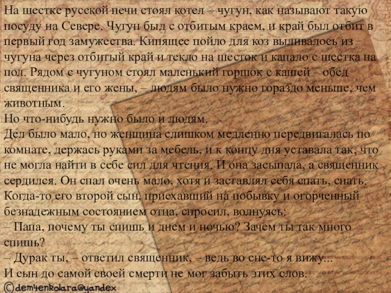 Слайд 45И жена священника, полубезумная от голода, заковыляла в кухню, где всегда