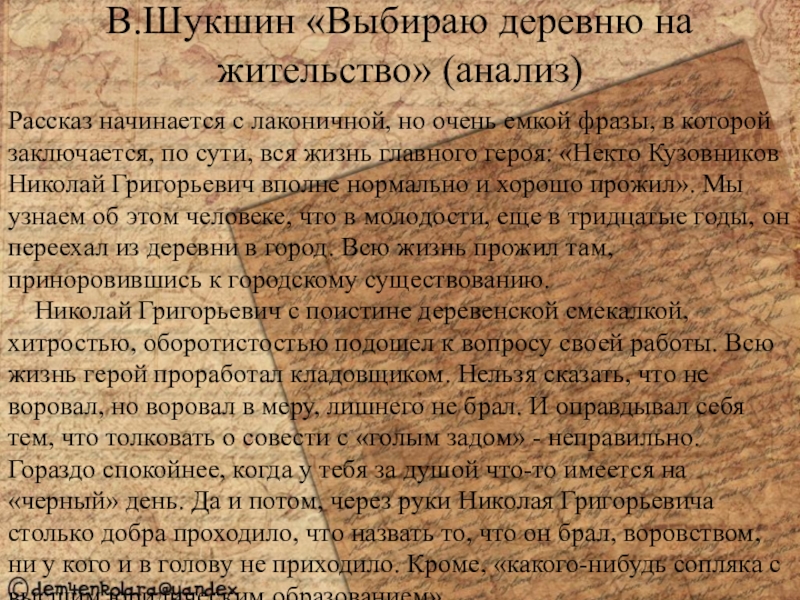 Слайд 46В.Шукшин «Выбираю деревню на жительство» (анализ)