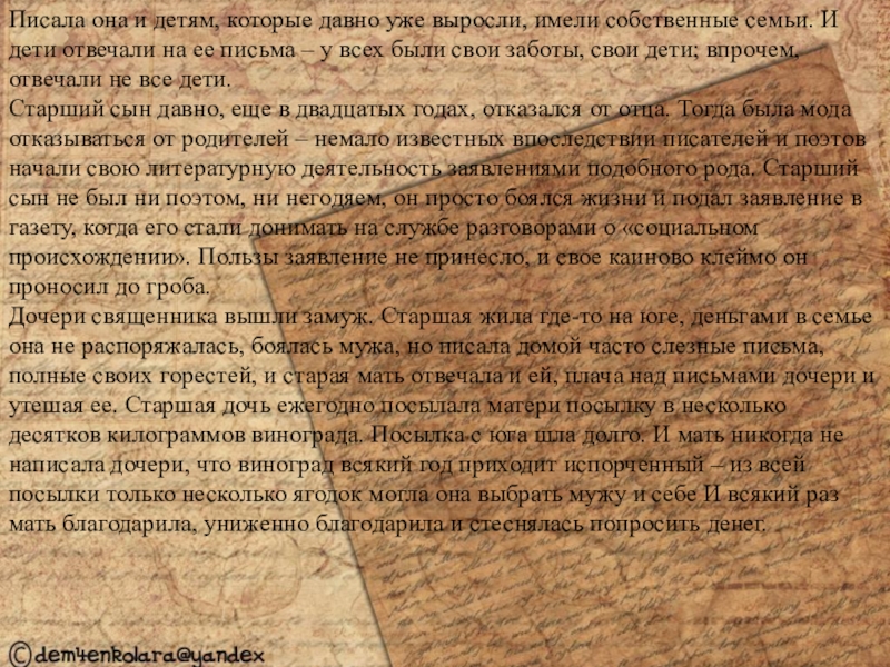 Слайд 40Писала она и детям, которые давно уже выросли, имели собственные семьи.